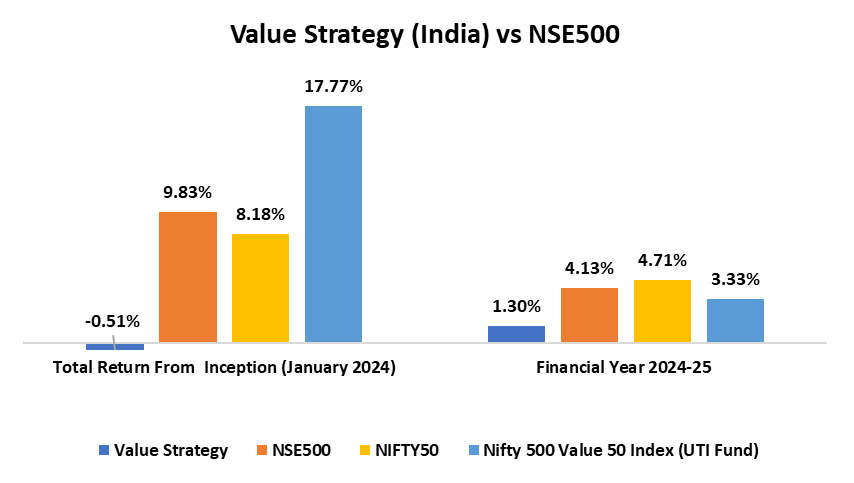 In January 2024, QuantMomo also added a value strategy. Value is a factor investment strategy with a focus on identifying stocks which offer the best value for the price of the stock. The focus of this strategy is to identify stocks with compelling valuation metrics on their balance sheet and income statements and rebalancing them yearly. In the recent past, value stocks have underperformed compared to growth stocks and this strategy is a very long term strategy to ride the resurgence of value stocks when it happens. History has shown that value stocks tend to eventually outperform. While we won’t go into the details of the statistics, we would like to mention that there is a lot of research on the public domain about value stocks and we encourage our followers to review them. QuantMomo’s Value strategy did not perform well but did not lose a lot of money and the performance is flat.